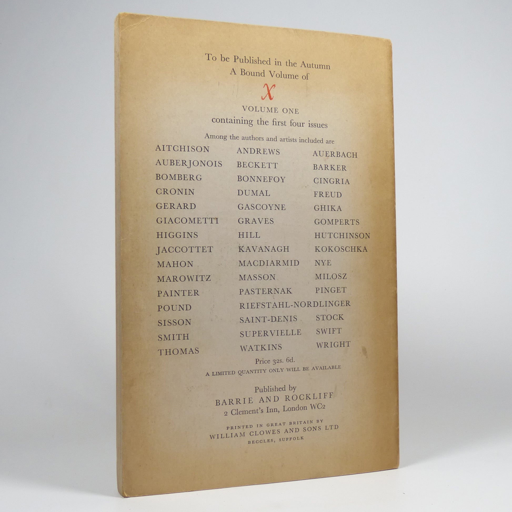 Various - X, A Quarterly Review - First Edition